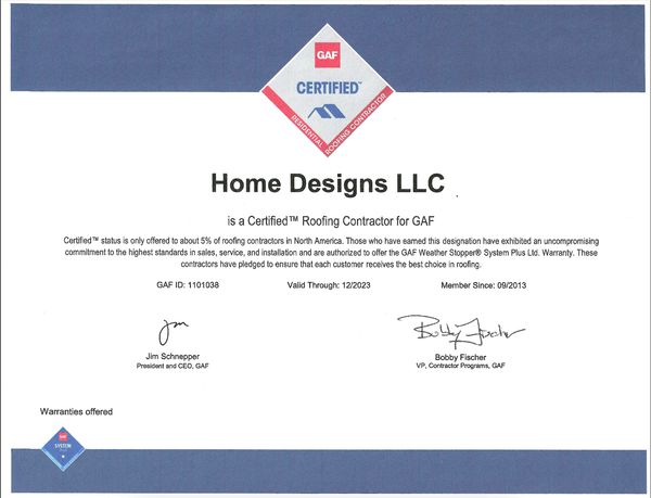 Certified with GAF since 2013. We are proud and stand by our quality.